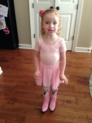 Our darling little ballerina all dressed up for her very first dance class (last Friday)!!!